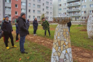 Das Brandenburgische Viertel wurde in vier Bauabschnitten von 1977 bis 1989 gebaut und hieß bis 1993 “Reimannviertel”. Der KUNStspaziergang führt nicht nur zu den neuen Arbeiten in der Cottbuser Straße, sondern auch zu Arbeiten aus der Entstehungszeit des Viertels, u.a. zur “Schwebenden Pracht”, einer Bronze von Axel Schulz und zur “Hockenden”, einer Bronze von Herbert Burschik. Auch die jüngst im Jahr 2024 aufgestellten Skulpturen von Anne Ochmann werden besucht.